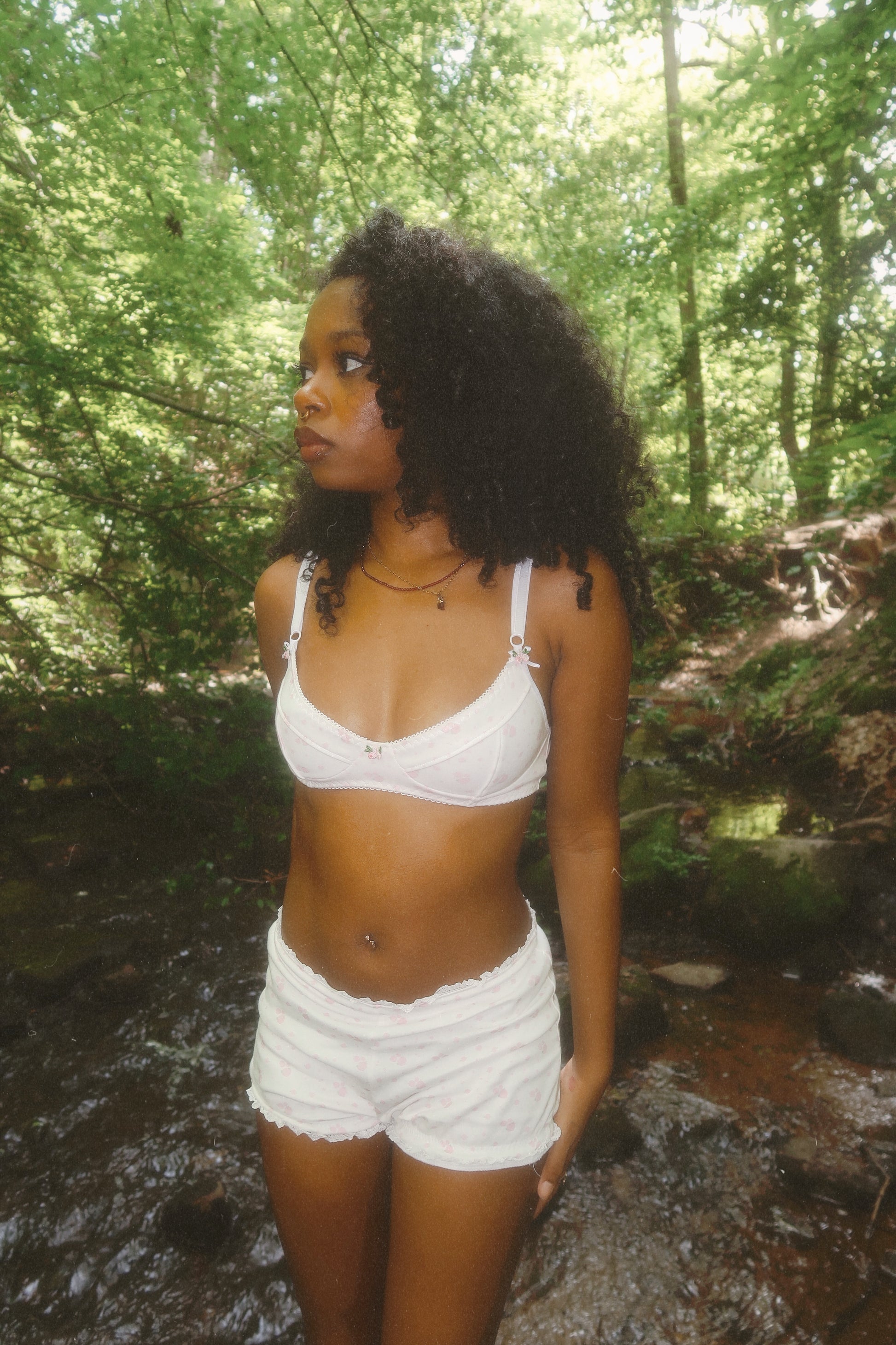 Handmade bra made with 100% organic cotton, the daintiest floral print and embroidered flowers and bows.